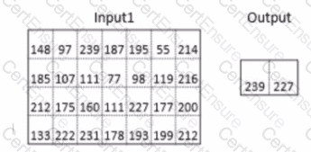 Which pooling summary operation and minimum square filter size (with stride of four) would generate the output feature map1?